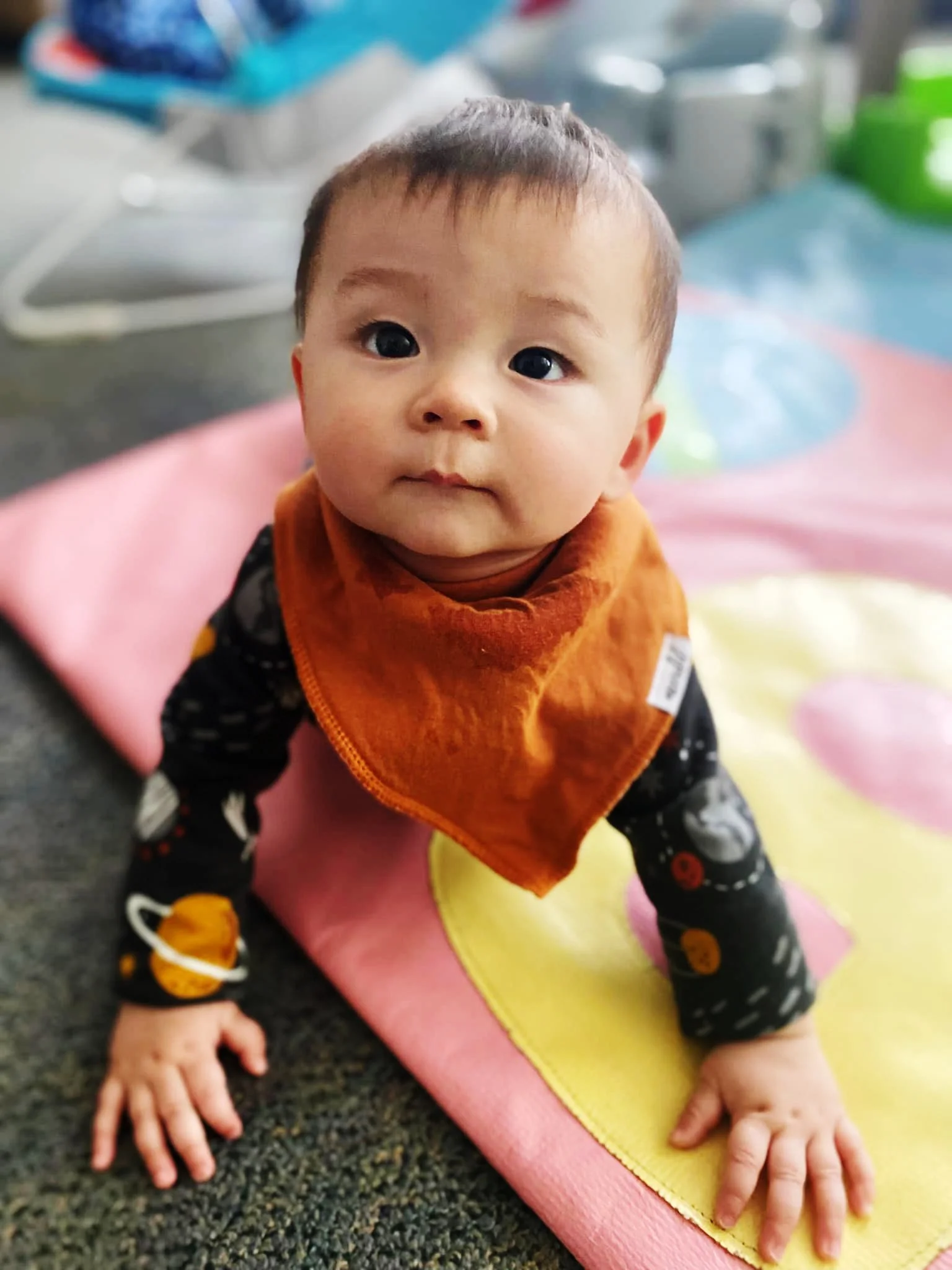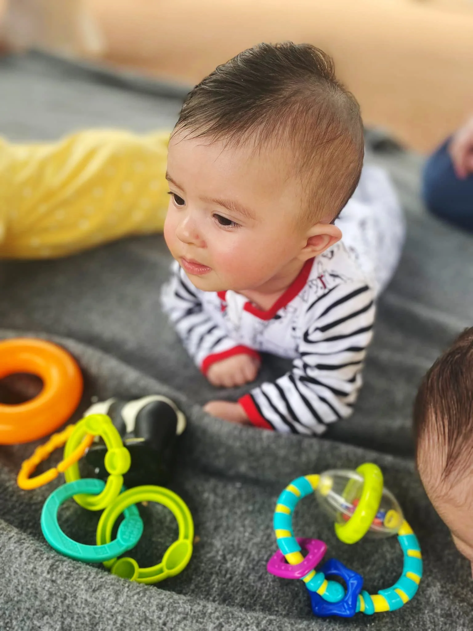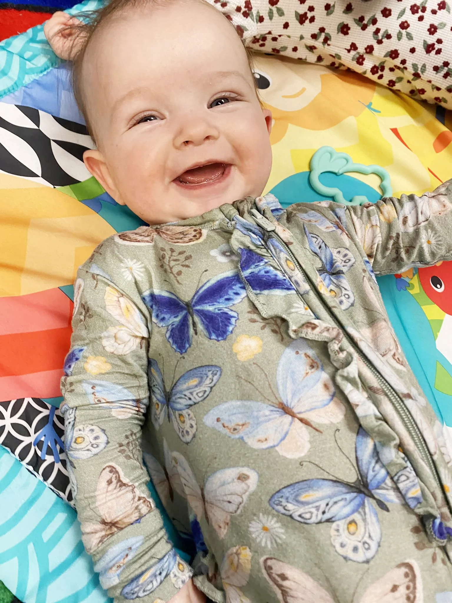 After establishing when your child had their last feeding and diaper change, the fun begins! We believe that children learn and develop more successfully in a comfortable environment built on play and relationships. Therefore, many times you will find our infants on the floor interacting with the teachers, engaged in activities such as reading and finger plays